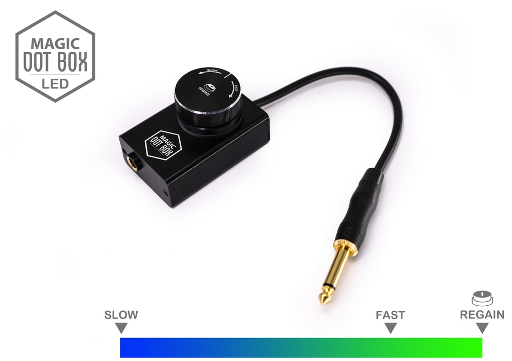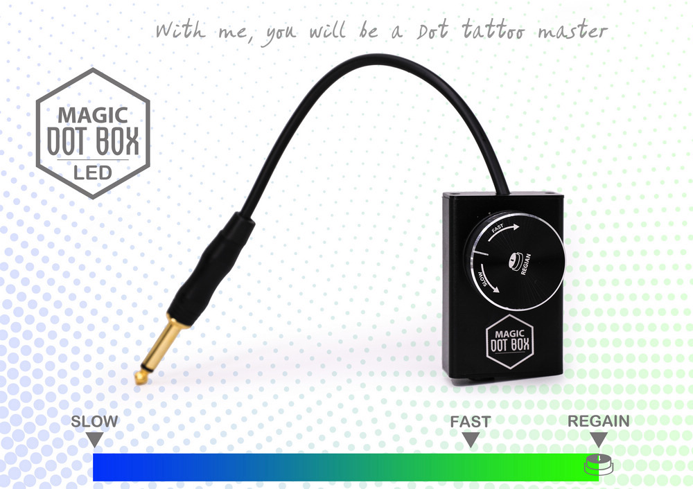 Es un regulador para convertir cualquier maquina de tatuaje en una maquina especial para trabajar puntillismo, trabaja como puente entre tu fuente de alimentacion y tu maquina, en el cual podras regular la velocidad de corte, el cual te permite trabajar el puntillismo de una forma inigualable.