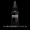 Eternal Ink MAXX Black es una tinta de tatuaje suave, opaca, de un solo pigmento y de color negro, sin cambio de color ni subtono. ¡Una tinta verdaderamente negra que permanece negra!