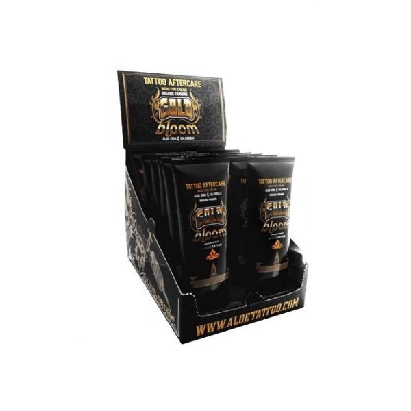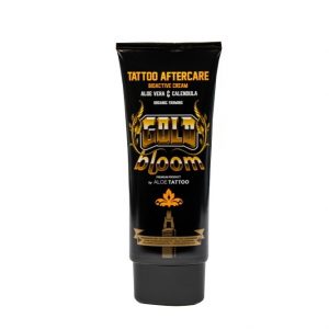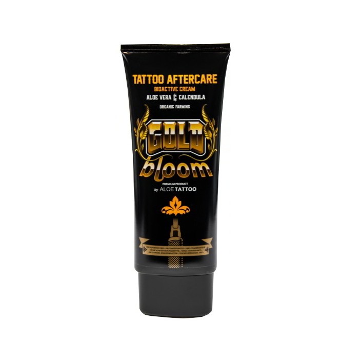 GOLD BLOOM Tattoo Aftercare Bioactive Cream by ALOETATTOO, es la nueva crema premium desarrollada por nuestro laboratorio. Es una crema de alta calidad, formulada especifícamente para conseguir unas condiciones óptimas durante el proceso de curación de la piel recién tatuada: