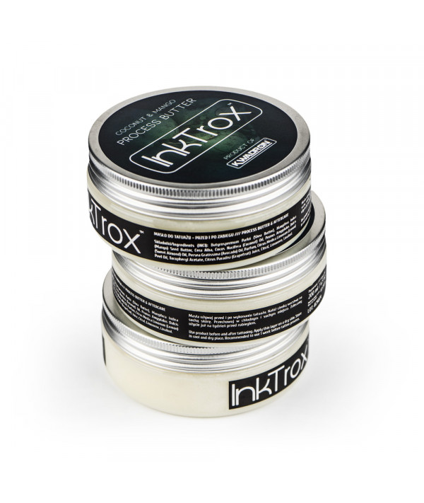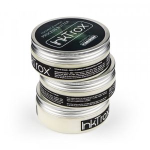 ¡InkTrox ™ es un producto excelente para usar durante el procedimiento! Gracias al contenido de manteca de karité tiene un efecto nutritivo, regenerador y suavizante. Hidrata profundamente la piel, haciéndola más elástica. La manteca de mango tiene propiedades antibacteriales y antivirales, y el coco acelera la regeneración.