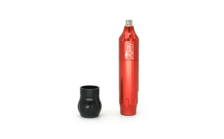 Rotativa GT6, fabricada por AVA; máquina tipo PEN para agujas de cartuchos. Es verdaderamente fuerte aun trabajando a baja tensión. Incluye un segundo grip intercambiable de 30mm.
