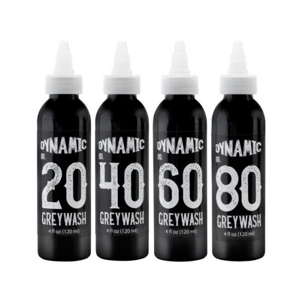 El juego Dynamic Ink Greywash contiene las siguientes 4 tintas para tatuajes: